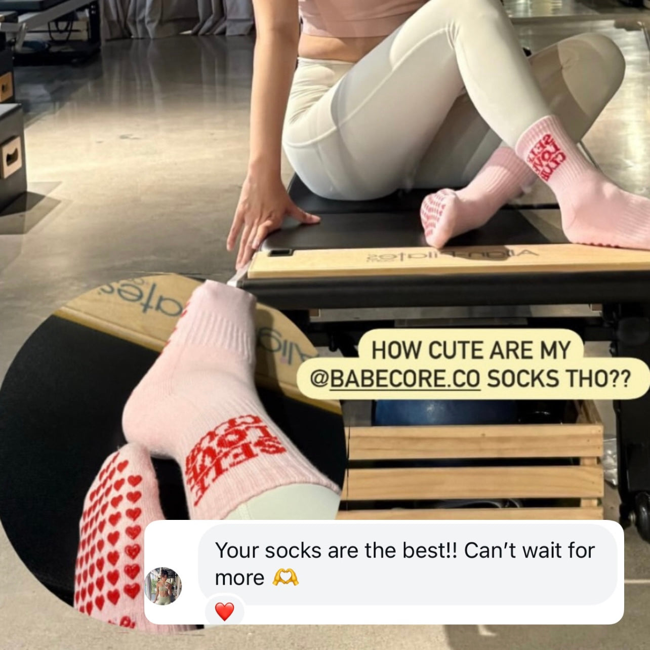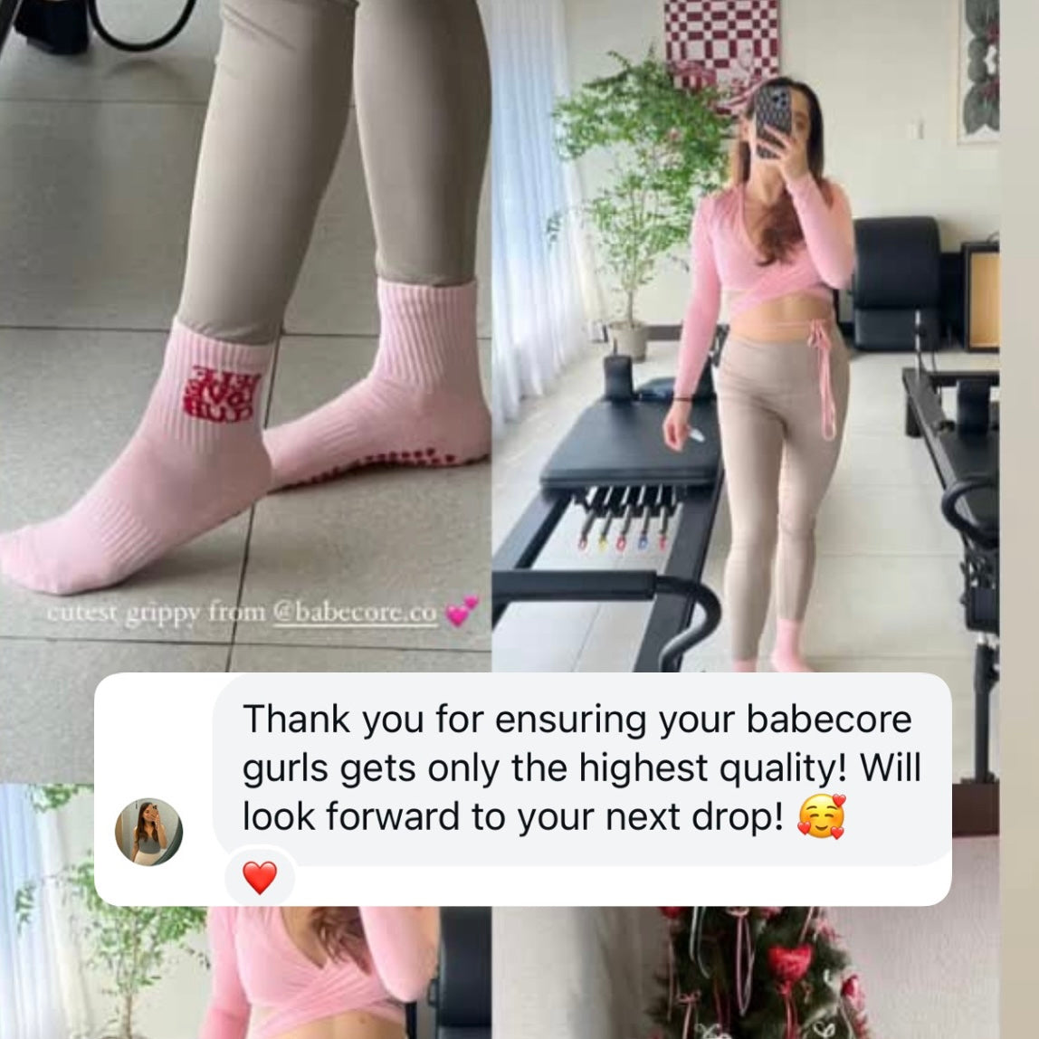 The BABE CORE Self Love Club Grip Socks are here to support you through every workout, stretch, and self-love moment.