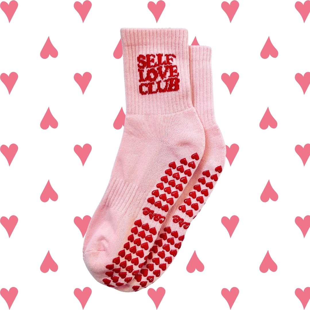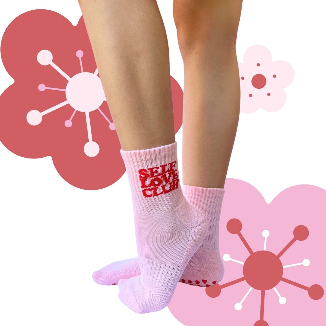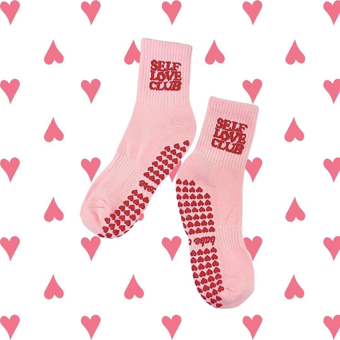 1 pair of Self Love Club Grip Socks (Pink with red details)