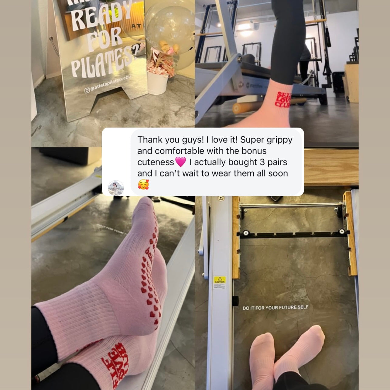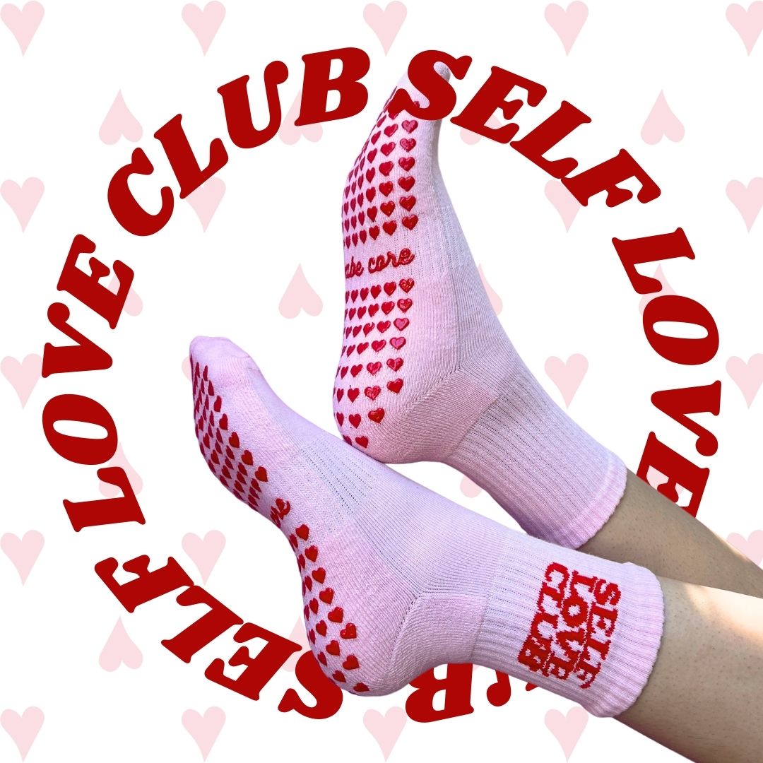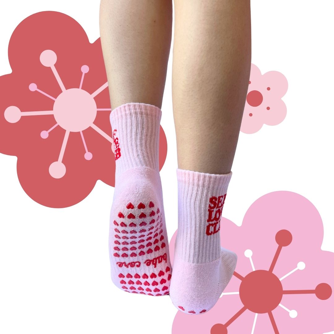 1 pair of Self Love Club Grip Socks (Pink with red details)