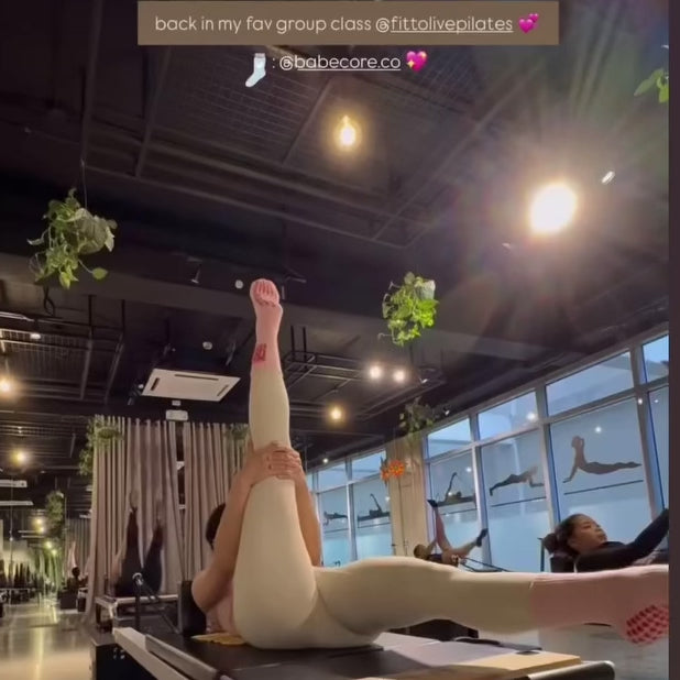 Whether you’re flowing through yoga 🧘♀️, powering through Lagree 💪, or reforming in Pilates 💞, these non-slip socks are designed for safety, style, and serious softness.